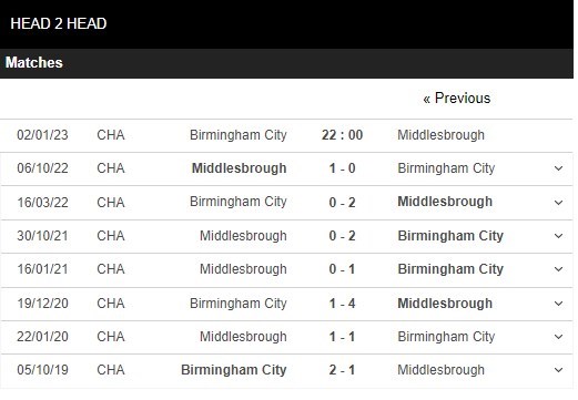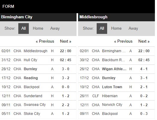 Thành tích đối đầu Birmingham vs Middlesbrough