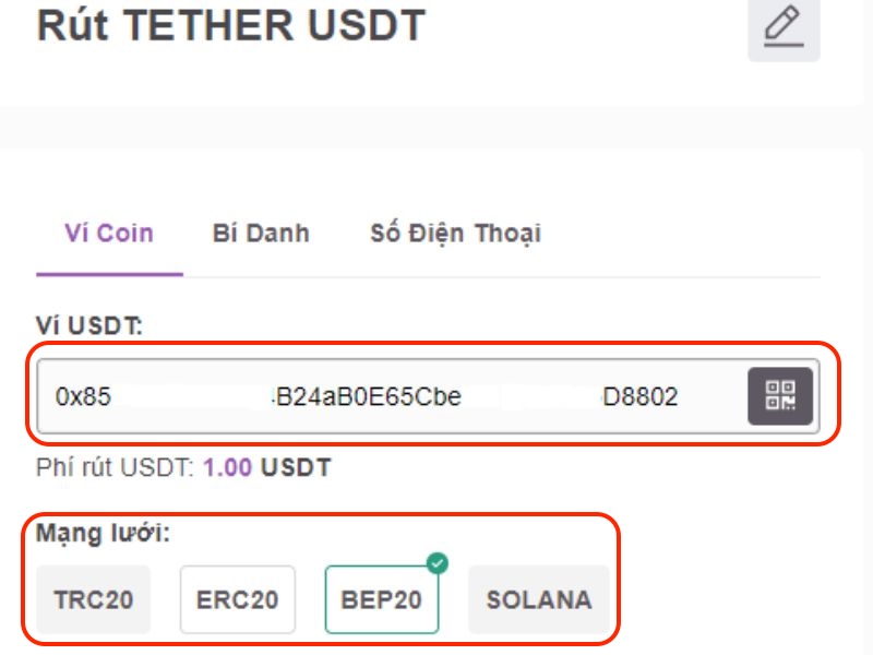 - Chọn mạng lưới blockchain phù hợp (ví dụ: TRC20 cho USDT).