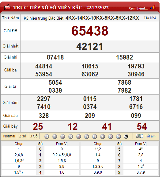 Kết quả xổ số và lô đề miền Bắc ngày 22/12/2022