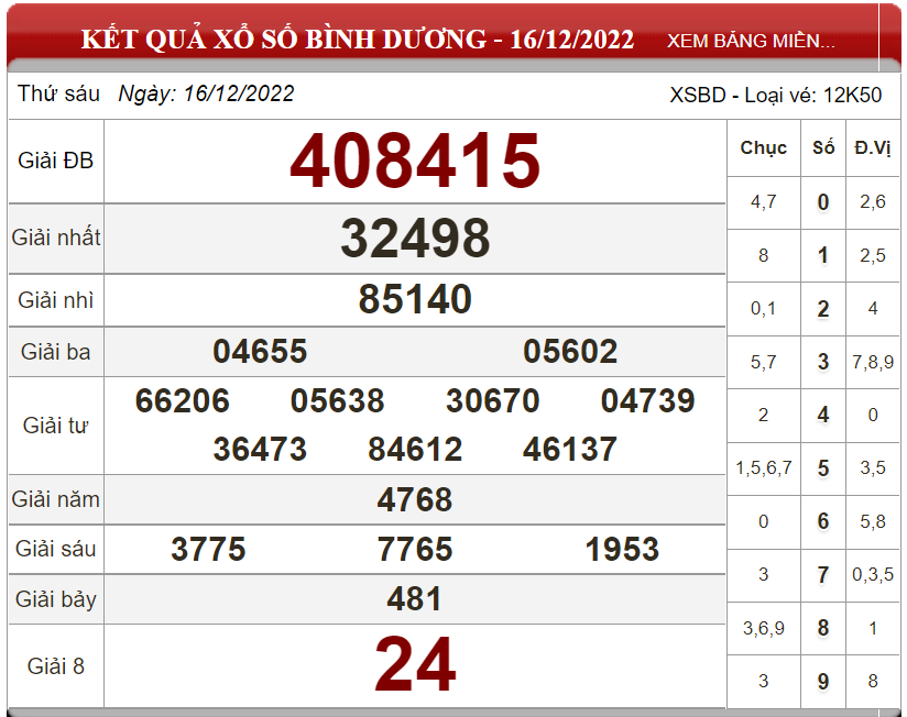Kết quả xổ số Bình Dương ngày 16/12/2022