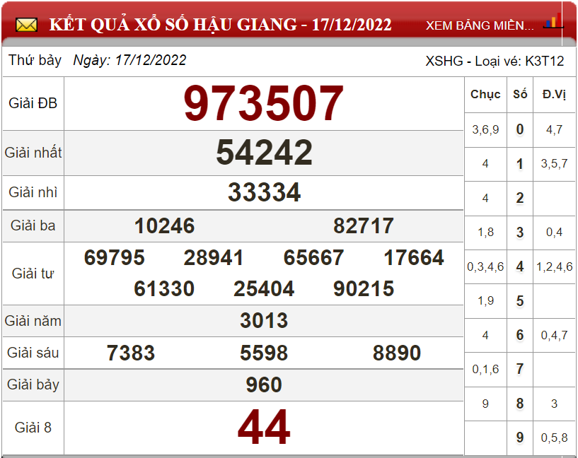 Kết quả xổ số Hậu Giang ngày 17/12/2022