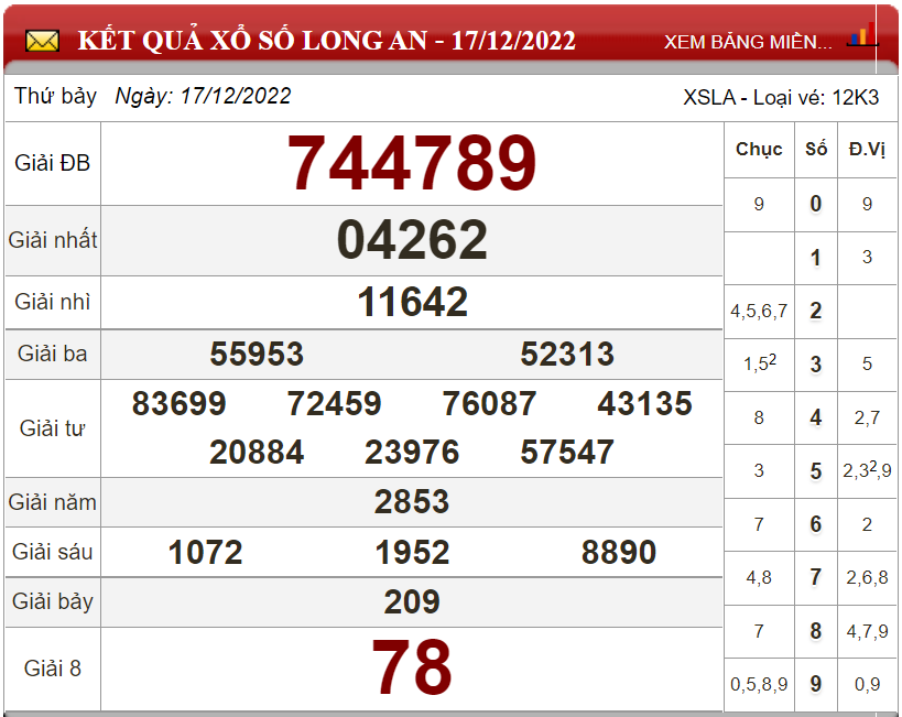 Kết quả xổ số Long An ngày 17/12/2022