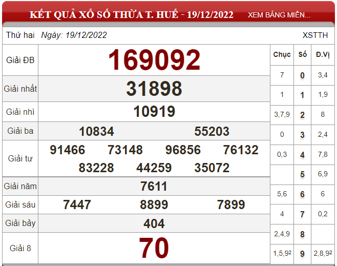 Kết quả xổ số Thừa T.Huế ngày 19/12/2022